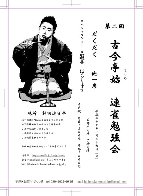 落語会でも注目されている始さんをはじめ、多数の人気2ツ目の方々が出ている神田連雀亭、ご興味のある方はぜひ行かれてみて下さいsign03